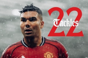 曼联官方社媒晒出数据海报,卡塞米罗本赛季英超抢断22次,曼联队内最多。