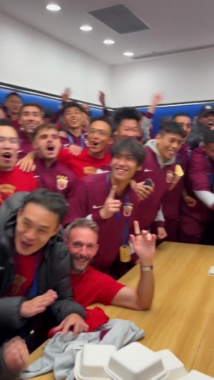 三连冠达成!上海海港新闻官晒更衣室夺冠合影