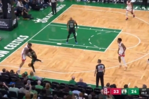首次出手就命中!杨瀚森低位接球背打 连续转身梦幻脚步打进!